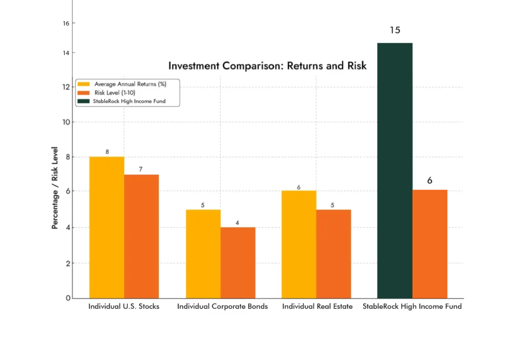 Investing with StableRock Income Fund offers distinct advantages in terms of returns and risk management when compared to traditional investment avenues like the stock market, bonds, and typical real estate investments.