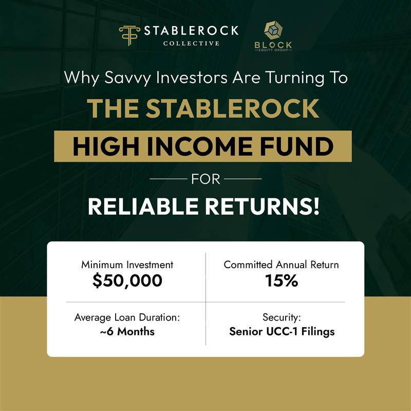 The StableRock High Income Fund offers reliable, passive income with minimal risk. Let our team manage the details while you enjoy consistent returns.